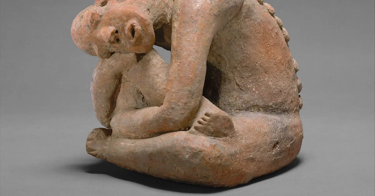 Amongst the most interesting finds at Djenne-Djenno are terracotta sculptures. These often depict a bearded male figure, sometimes helmeted and carrying weapons, usually riding a horse. There are no representations of what may be identified as rulers or kings, indeed many figures are of ordinary people who are often in a kneeling position or sitting and, like the rider figures, have their faces upturned, square chins, and multiple eyelids. They typically wear only a short kilt but many necklaces and bangles on the wrists and ankles. Many figures also show ritual scarification. Curiously, a high proportion of the figures have been given symptoms of tropical diseases and may have a snake attacking them. Figures are up to 50 cm (20 inches) in height, either hollow or contain a reinforcing iron rod core. They have incised decoration or details, and some show traces of coloured paints. All sculptures at Djenne-Djenno have been found in a domestic context, which suggests they may have been intended for household shrines set into the walls. Certainly, a strong tradition of ancestor worship and a belief in protective household spirits persisted until the 19th century CE in the region.