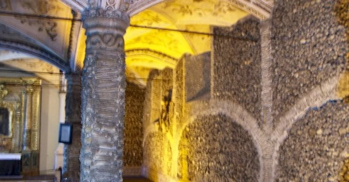 The Chapel of Bones was constructed by Franciscan monks in the late 16th century CE when the city faced the dilemma of crowded cemeteries. Bones were exhumed and relocated to the chapel as a creative solution to the problem of overcrowding but also to provide a memento mori or reminder of the inevitability of death.
