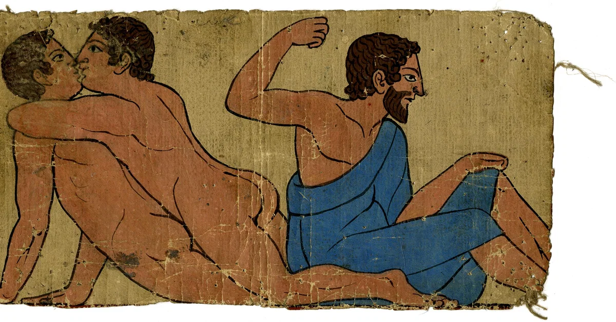 Pets, like hares and rabbits, were also popular tokens of affection. This red-figure vase painting depicts a Greek man giving a pet hare to his beloved as a gift. Attributed to the Kleophrades Painter. Produced in Attica, c. 480 BCE, found in Cerveteri, Italy.