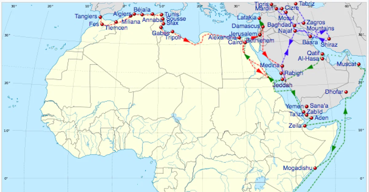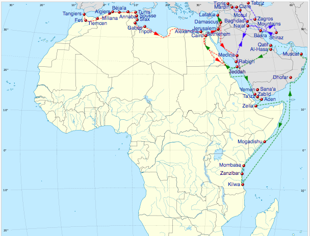 Sladew. (2019, February 07). Map of Ibn Battuta's Travels, 1325-32 CE. World History Encyclopedia. https://www.worldhistory.org/image/10031/map-of-ibn-battutas-travels-1325-32-ce/