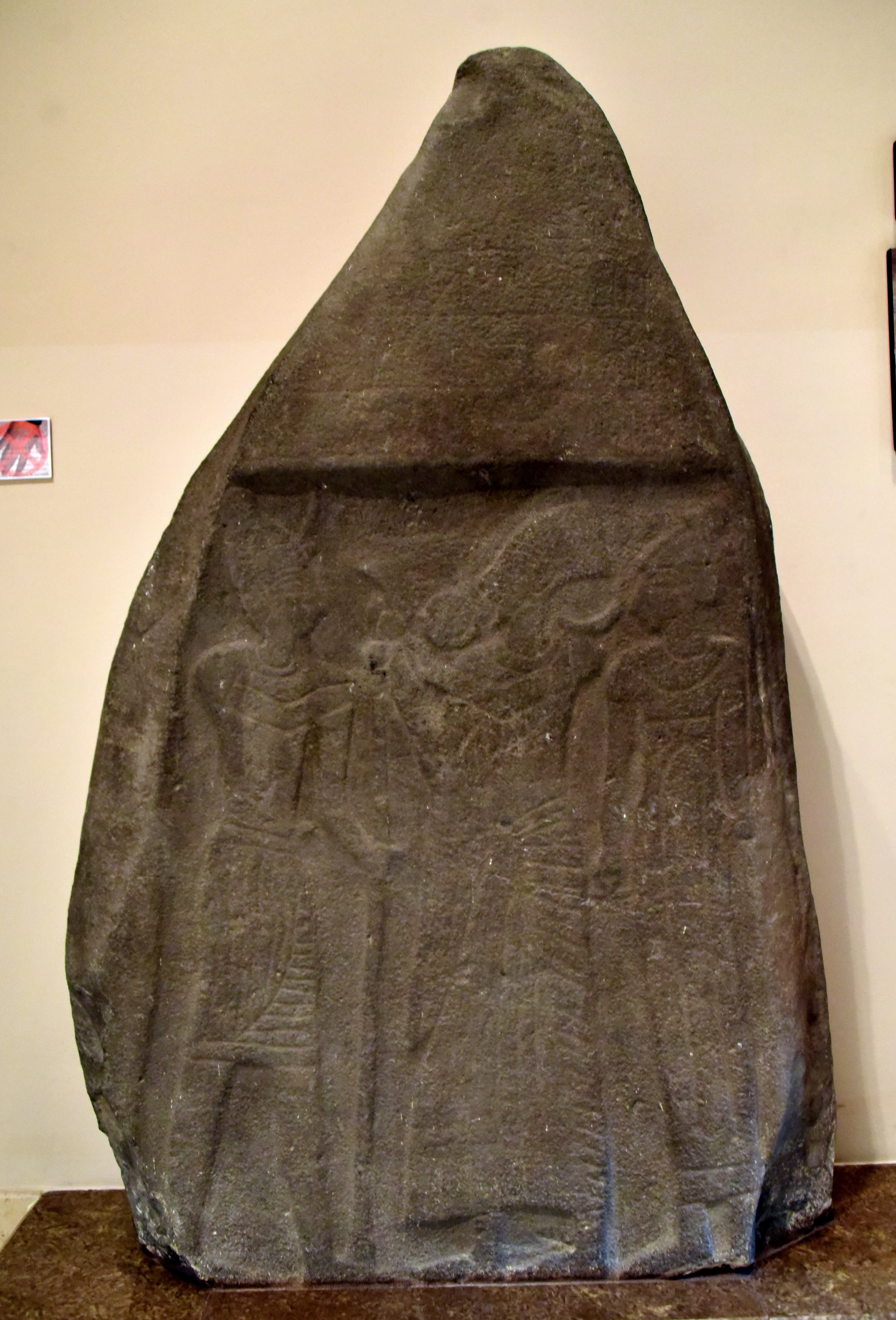 Al-Balu's stele is a Moabite document. This stele found in Al-Balu'a, north of Kark, in 1930 CE contains an illegible hieroglyphic inscription. There are three figures depicted on the stele, which may represent a king and two deities. It could be a commemorative stele for the coronation ceremony of a Moabite king. It dates back to 1309-1151 BCE, between the Late Bronze Age and Iron Age, which was a time of Egyptian political and cultural domination. (The Jordan Museum, Amman, Jordan).