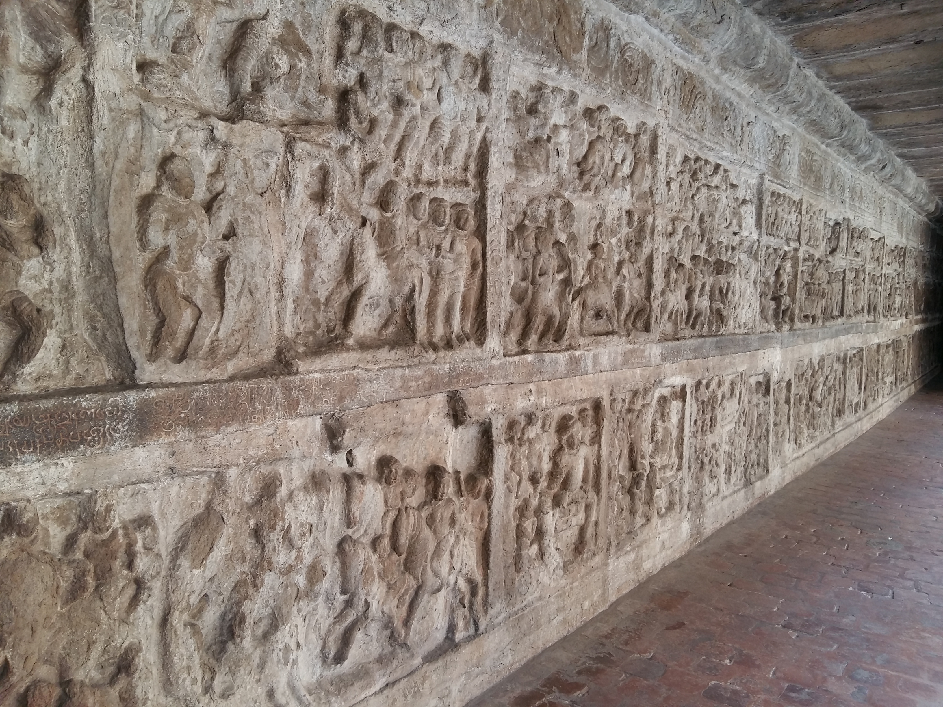 Panels displaying Pallava dynasty history, Kanchipuram, India. 8th century CE.