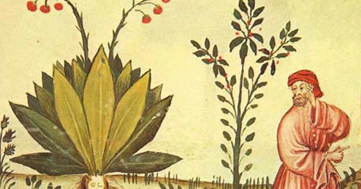 Mandrake (Mandragora officinarum), scanned from 15th century manuscript Tacuinum Sanitatis.