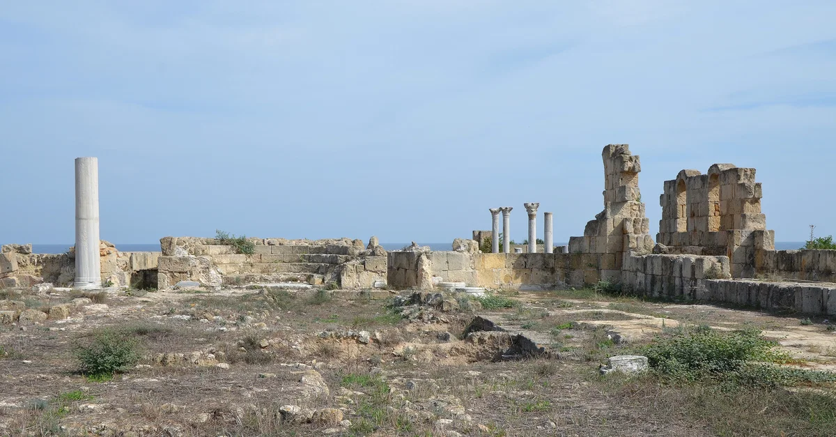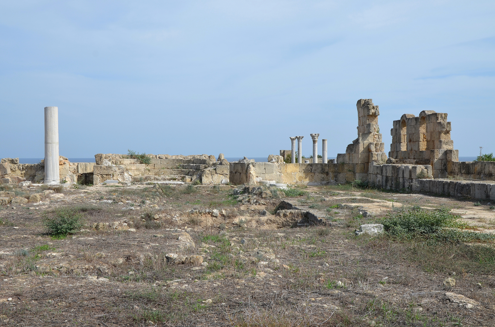 The Kambanopetra Basilica of Salamis in Cyprus was built in the 4th century CE. It was an impressive complex with a large colonnaded rectangular courtyard and porticoes on all four sides, adjoining a three-aisled basilica.
