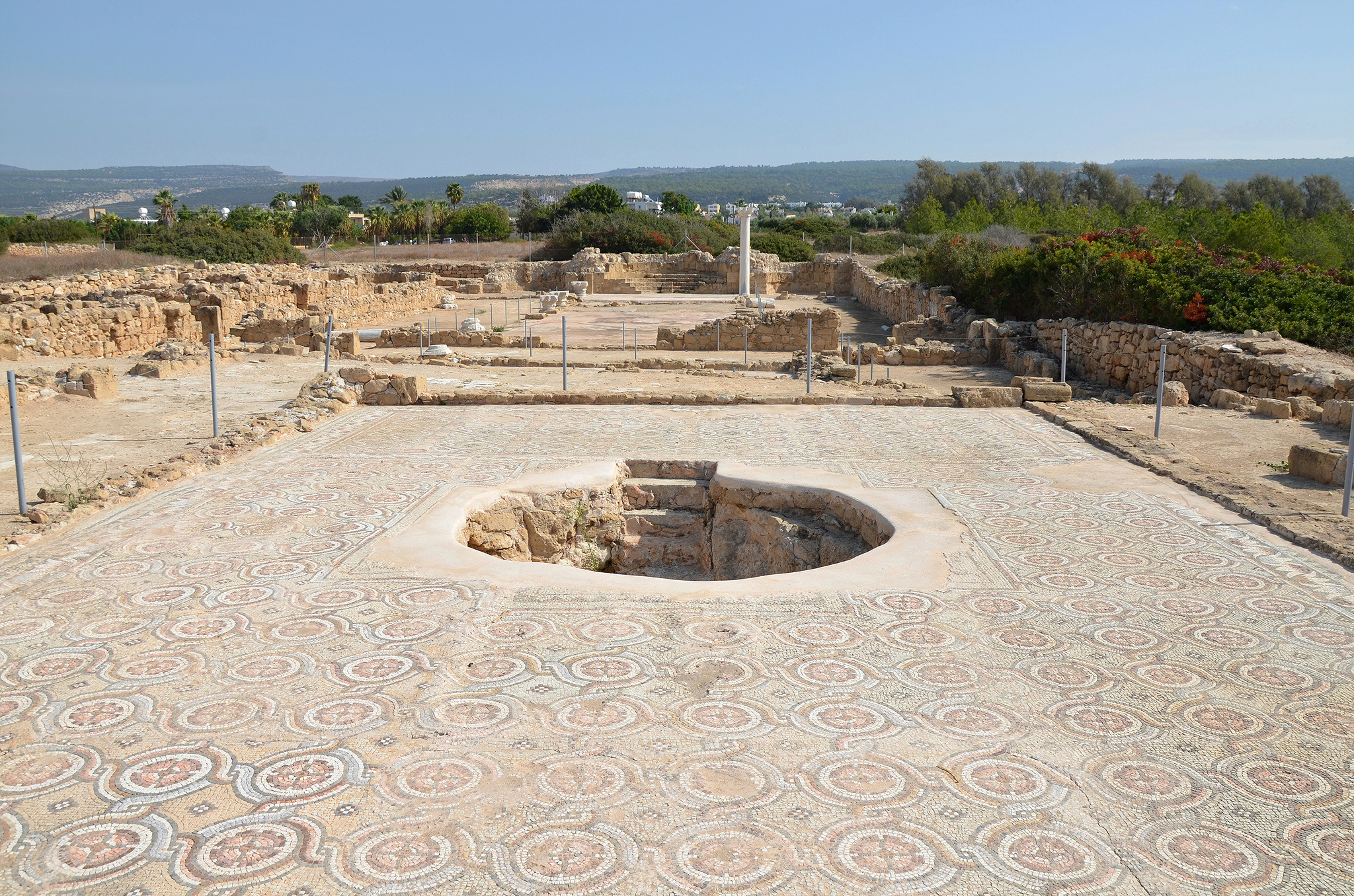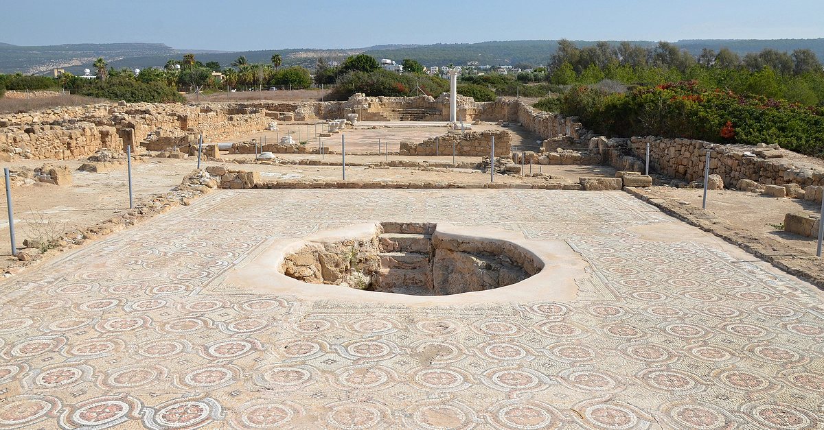 An early Christian basilica in Agios Georgios (Cyprus) dating back to the 6th century CE. It is adorned with lovely mosaic floors depicting animals and sea-creatures. Located near the village of Pegeia, it was the site of a late Roman and early Byzantine town and important harbour.