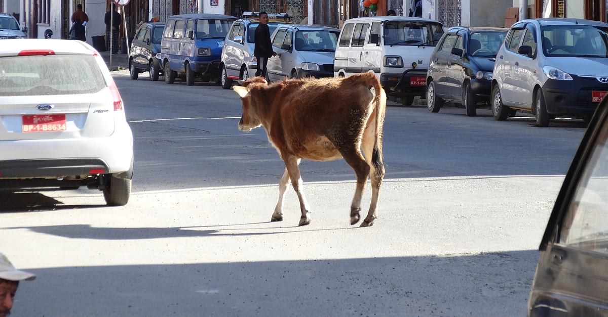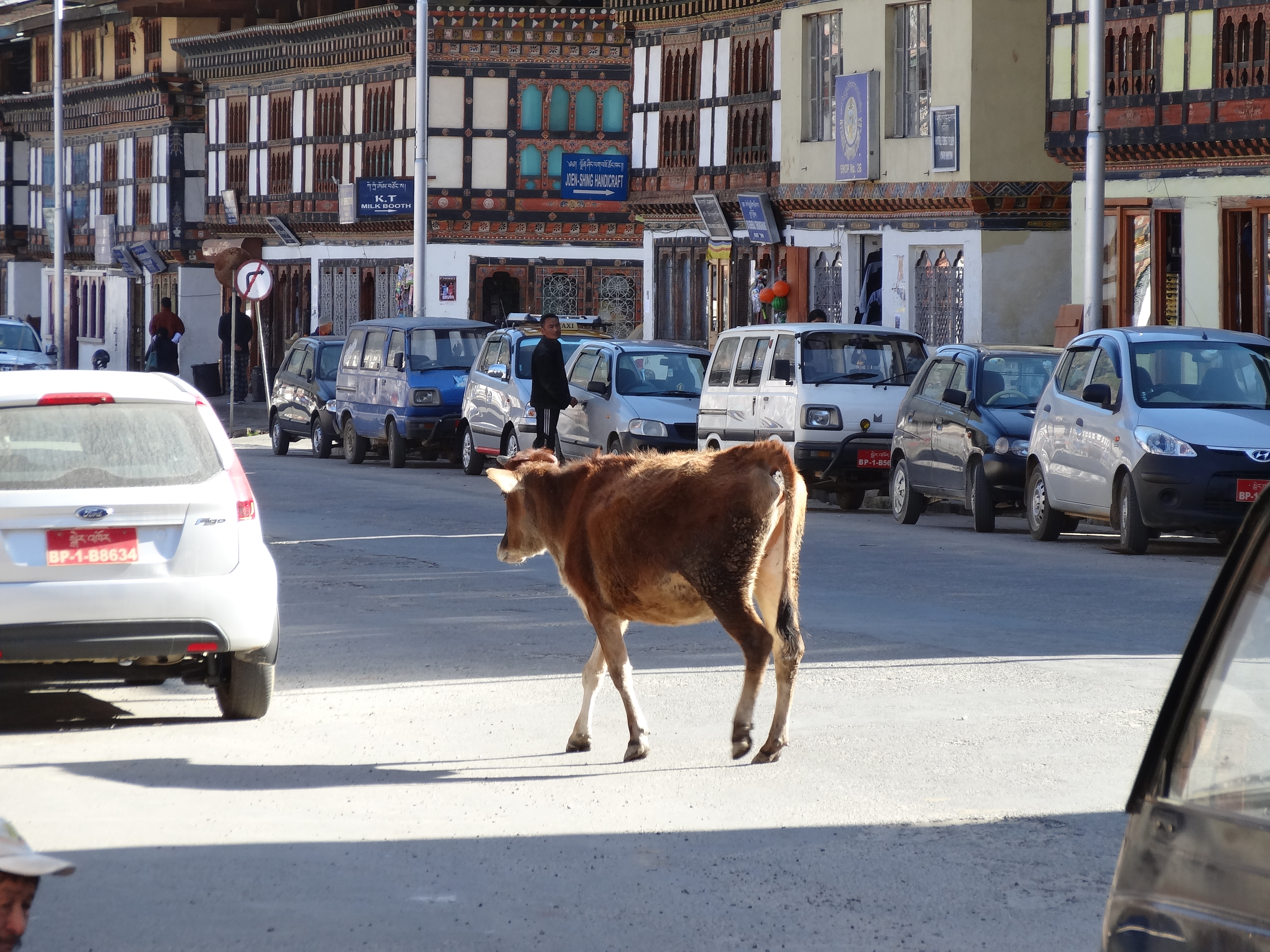 In Thimphu, the capital city of Bhutan, animals are often seen along the main street Norzim Lam.