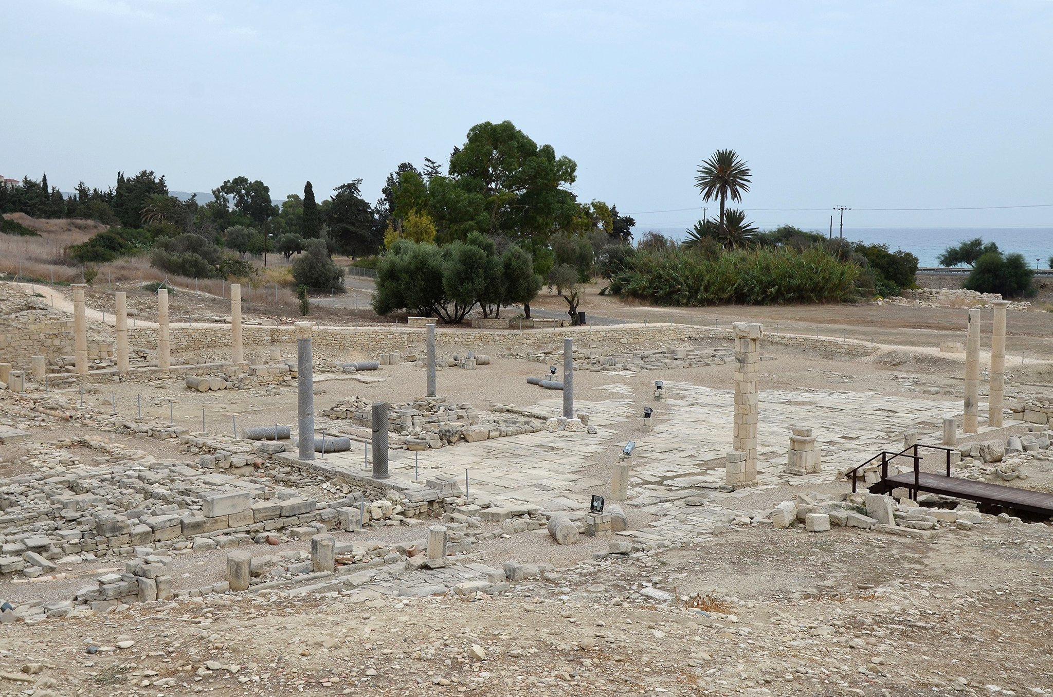 View of the Agora of Amathous in Cyprus dating back to the Hellenistic period. The Agora consisted of a large rectangular stone-paved area with porticoes on four sides.