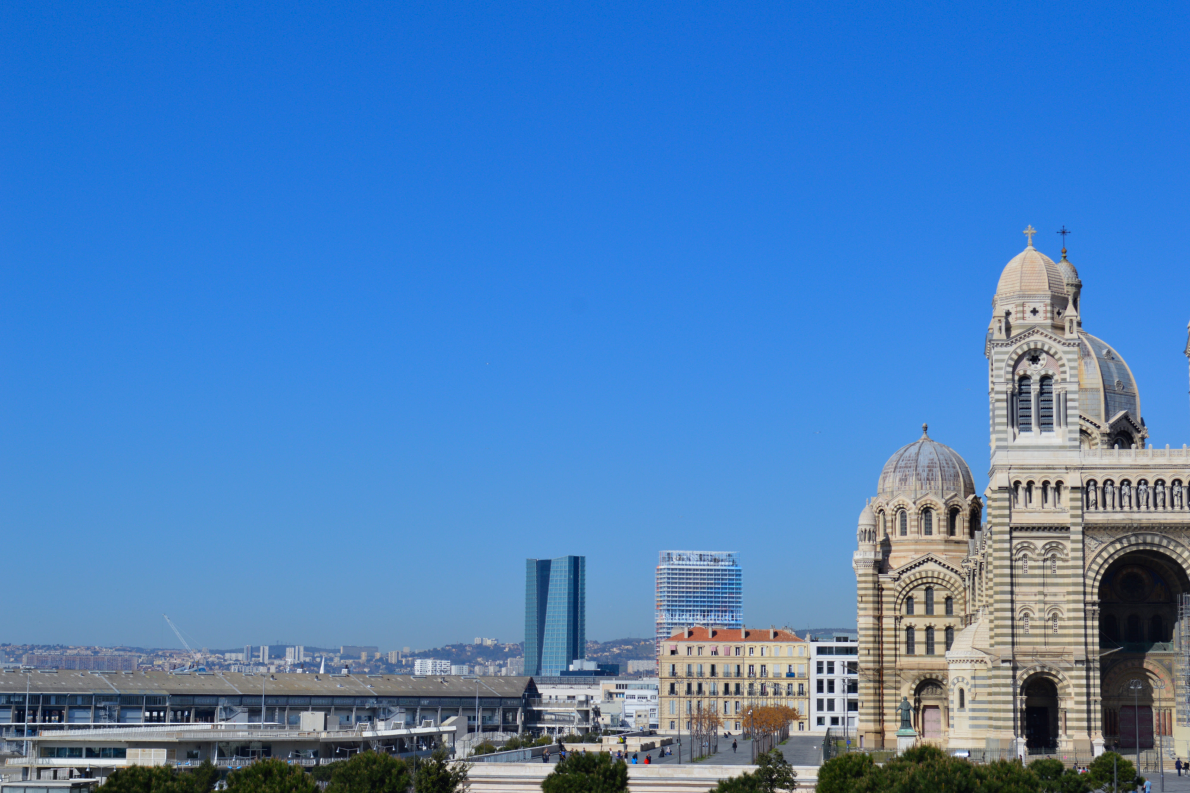 Neo-Romano-Byzantine Cathedral built from 1852-1896 CE, next to Marseille's passenger port.