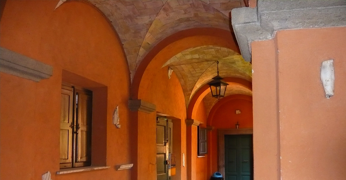 Corridor leading to the door that takes visitors down into the Catacombs of Priscilla, Rome, Italy. 2nd century to 5th century CE.
