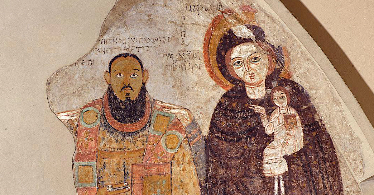 A fresco of Bishop Marianos and the Vrigin Mary, Faras Cathedral, Nubia (modern Sudan). 11th century CE. (Polish National Museum, Warsaw)