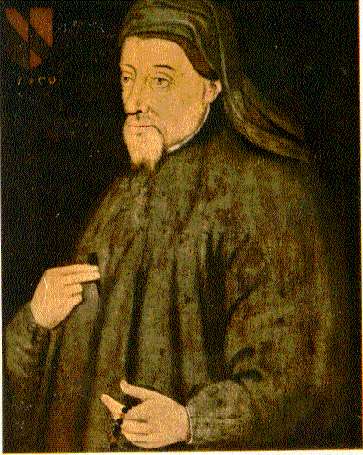Portrait of Geoffrey Chaucer, c. late-14th Century CE by an unknown British artist. This oil on panel painting is currently in the collection of the Harvard Art Museum, Cambridge, MA.