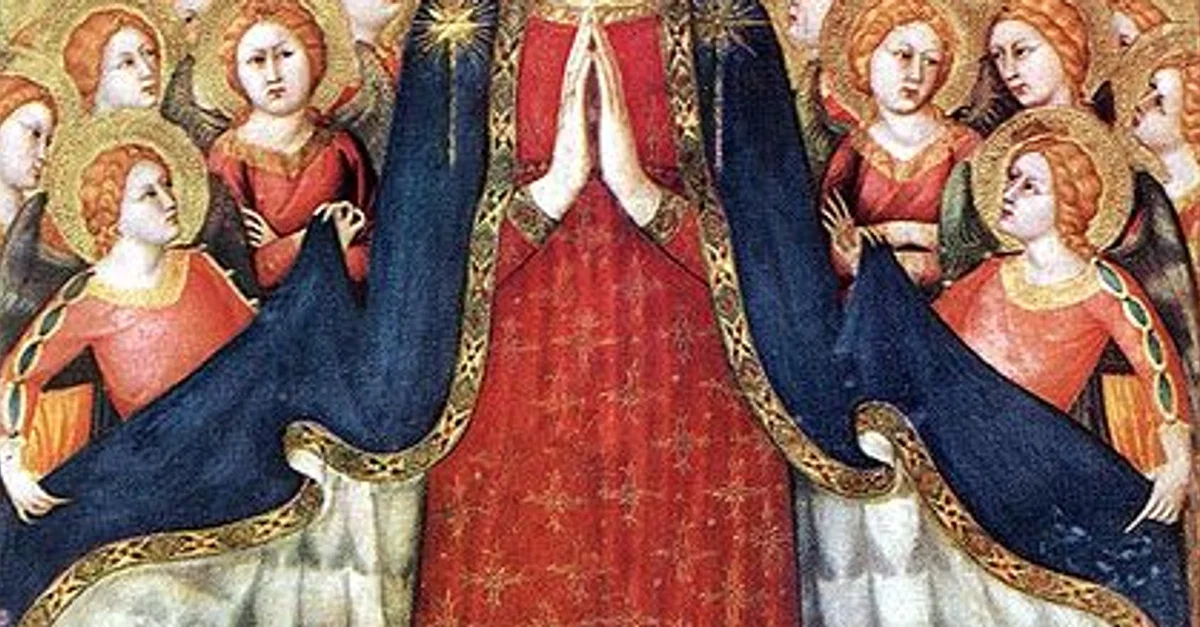 The Madonna of Mercy in the Orvieto (also known as Madonna of the Recommended) is a 14th Century CE tempura painting. This fresco is housed in the Chapel of the Corporal in the Orvieto Cathedral in Tuscany, Italy. The painting portrays the Virgin Mary sheltering Dominican nuns and major benefactors of the Cathedral under her mantle. This fresco is one of many depictions of Mary covering praying devotees under her mantle from in Late Medieval Italy. The painting was created c. 1350 but has been modified over the centuries, especially in the 19th century. The painting is usually attributed to the Italian painter Lippo Memmi (c. 1291 - 1356 CE), but this attribution has been questioned.