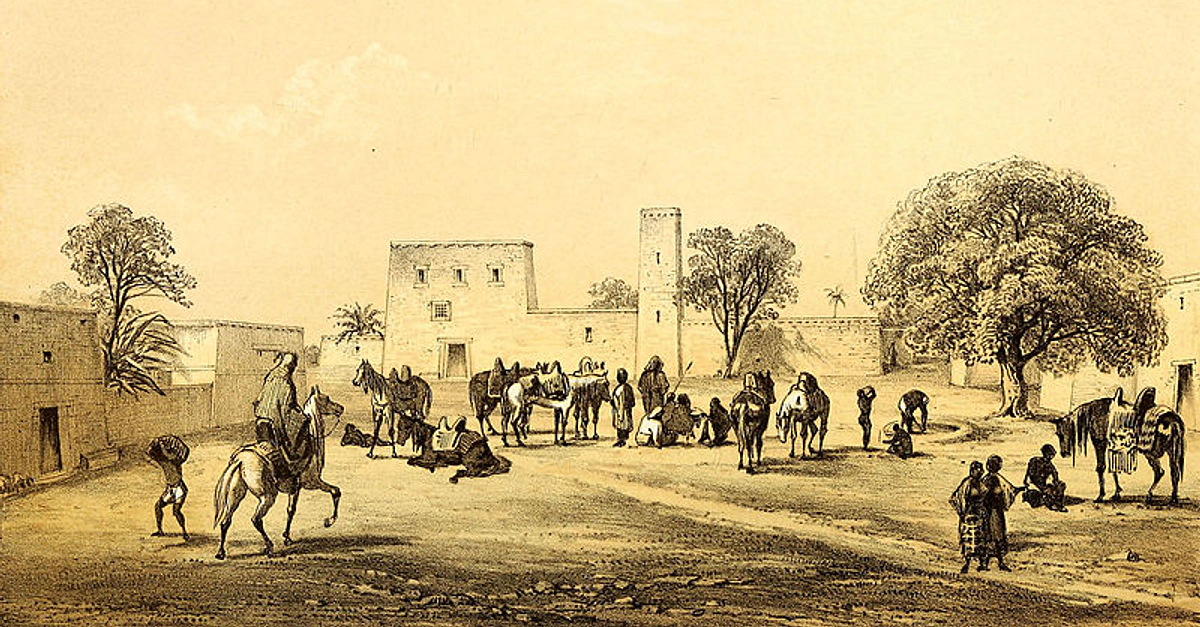 A lithograph of the Dendal in Kukawa, c. 1857 from Travels and Discoveries in North and Central Africa (Volume 2) by Heinrich Barth (1821 - 1865 CE). Kukawa was founded by Muhammad al-Amin al-Kanemi (1776 - 1837 CE) who supplanted the Saifawa (aka Sefawa) Dynasty which had ruled the empire of Kanem-Borno since roughly 1075 CE. Kukawa eventually became the capital of Borno.