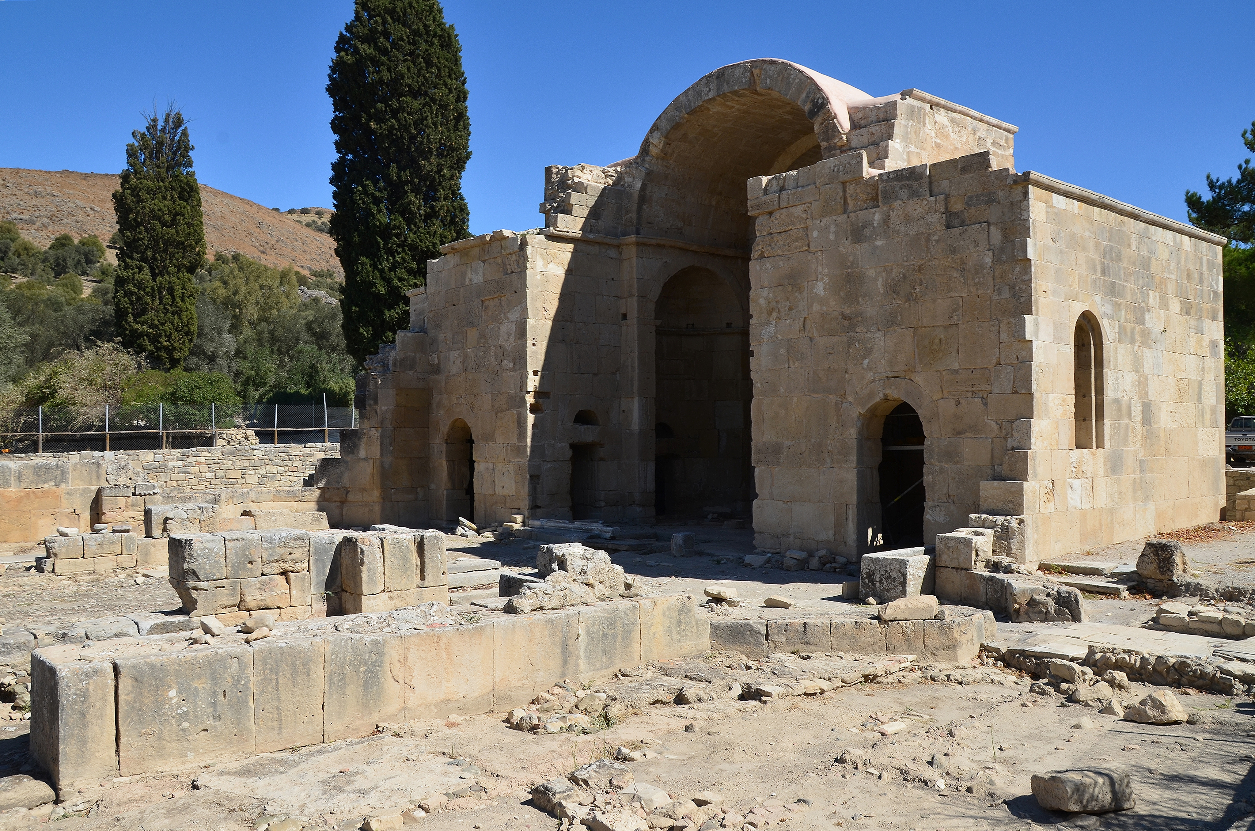 The 6th-century Byzantine church in Gortyn (Crete), dedicated to St. Titus (Hagios Titos), the first Bishop of Crete, appointed by Paul the Apostle and martyred at the site.