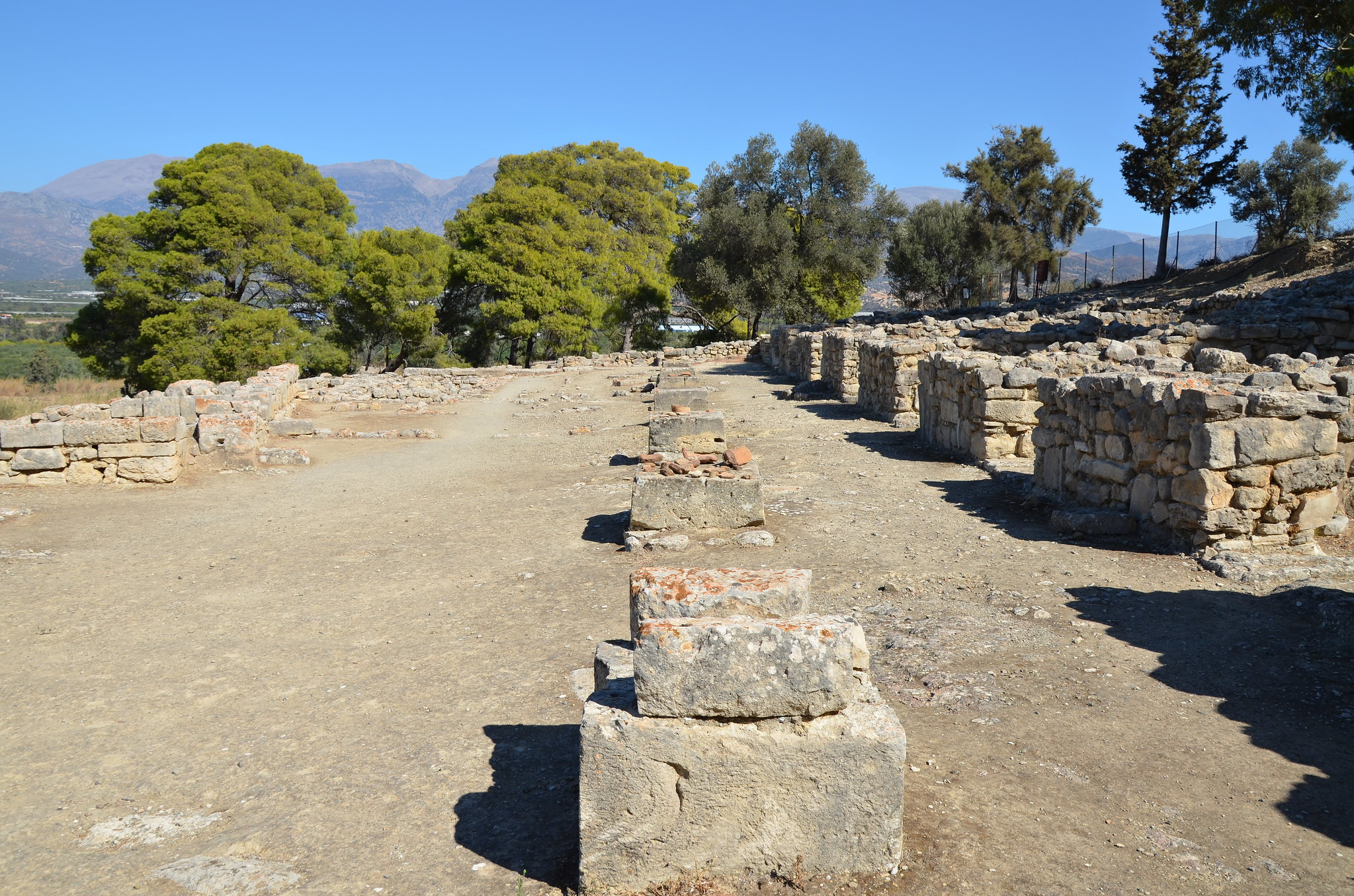 The Agora (marketplace) at the Minoan settlement of Hagia Triada (Crete) belonging to the Mycenaean era (1400-1100 BCE) with eight spacious rooms, probably shops, arranged behind a portico.