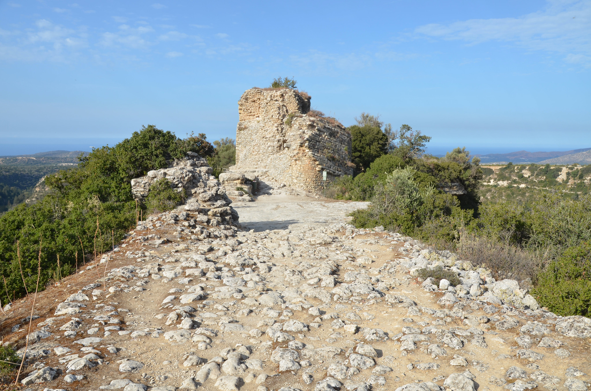 The remains of a Hellenistic defensive tower standing atop Pyrgi hill in the ancient city of Eleutherna on Crete. The tower was used from the Hellenistic until the Byzantine period (4th century BCE to 7th centuries CE).
