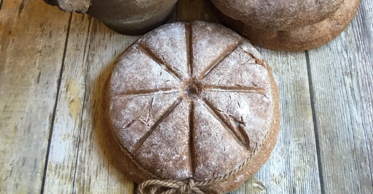 A recreation of Panis Quadratus (or Panis Siligineus), a type of ancient Roman bread found carbonized in Pompeii, and depicted in Roman art.