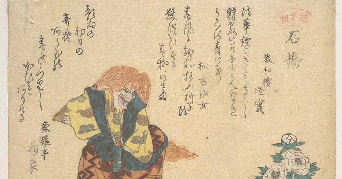 A woodblock print of a dance scene from Noh theatre. c. 1820 CE. 21 x 18.3 cm. (Metropolitan Museum of Art, New York)