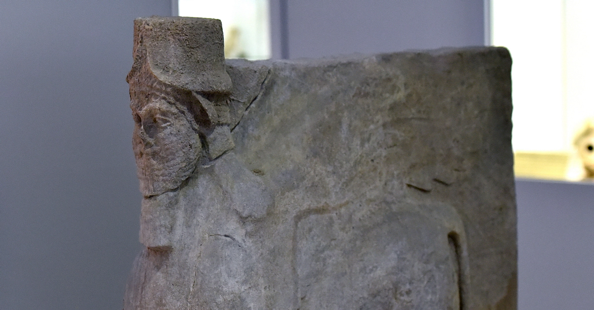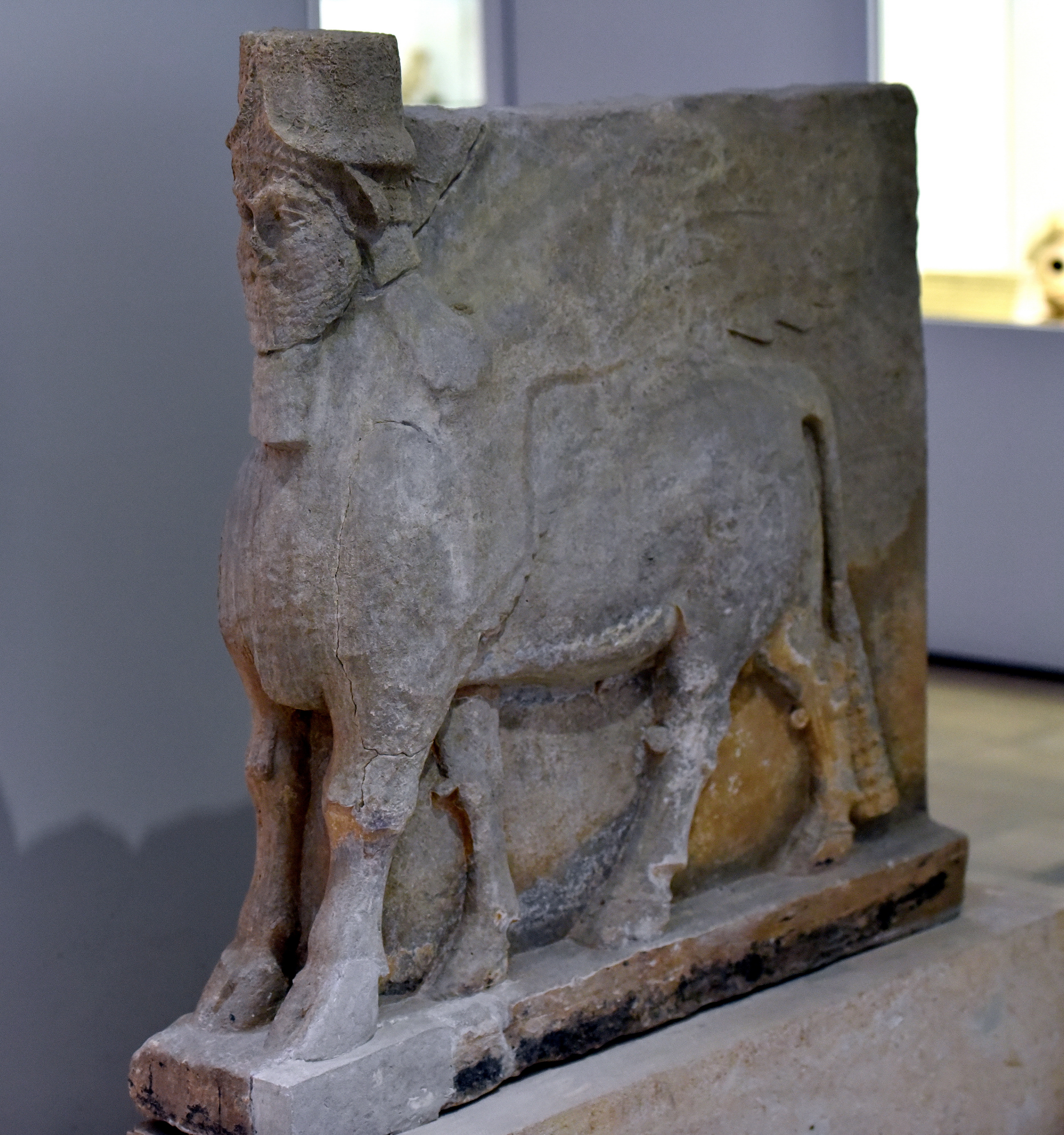 This small limestone lamassu (which is one of a pair) was found in the city of Nimrud (ancient Kalhu), Iraq. Neo-Assyrian period, 911-612 BCE. On display at the Iraq Museum in Baghdad, Republic of Iraq.