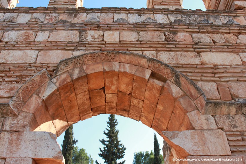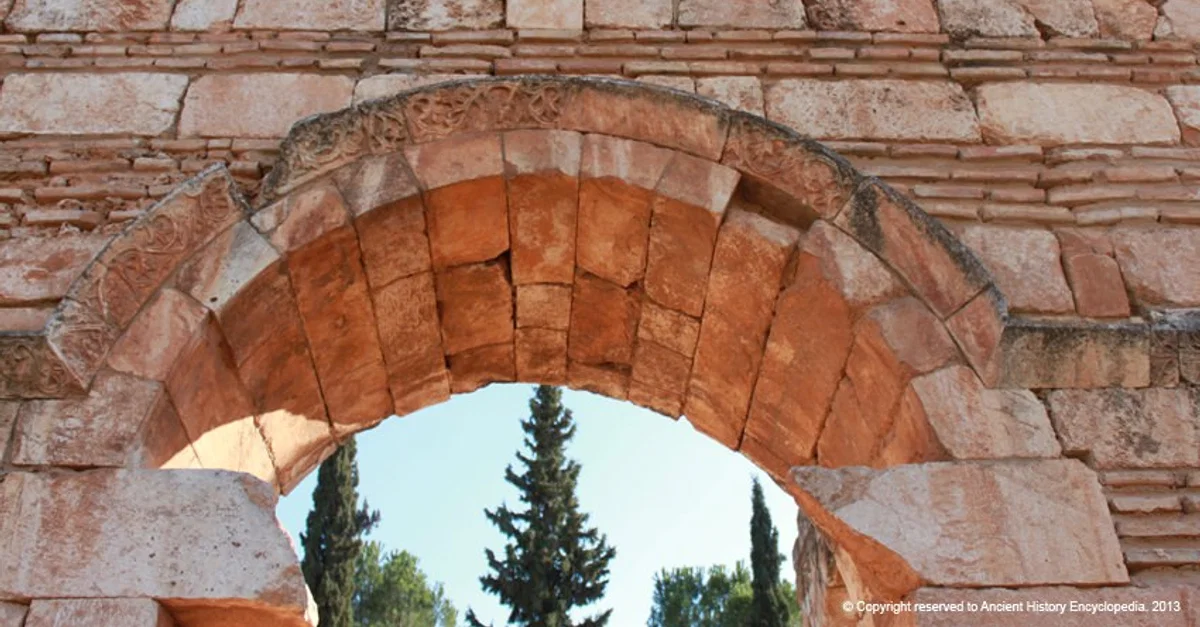 An arch from the ruins of Anjar (8th century CE) in modern Lebanon. The structure recalls Roman architectural archways.