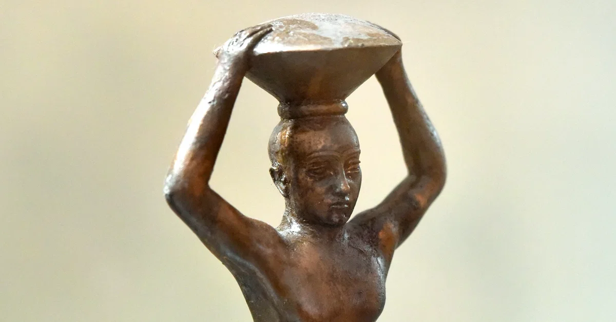This bronze statuette was found at the foundation deposits of the temple of Eanna at Nippur. The statue depicts Ur-Nammu, king of Ur, holding a basket on his head as the builder of the temple. Ur III (Neo-Sumerian) period, reign of Ur-Nammu, 2112-2094 BCE. On display at the Iraq Museum in Baghdad, Republic of Iraq.