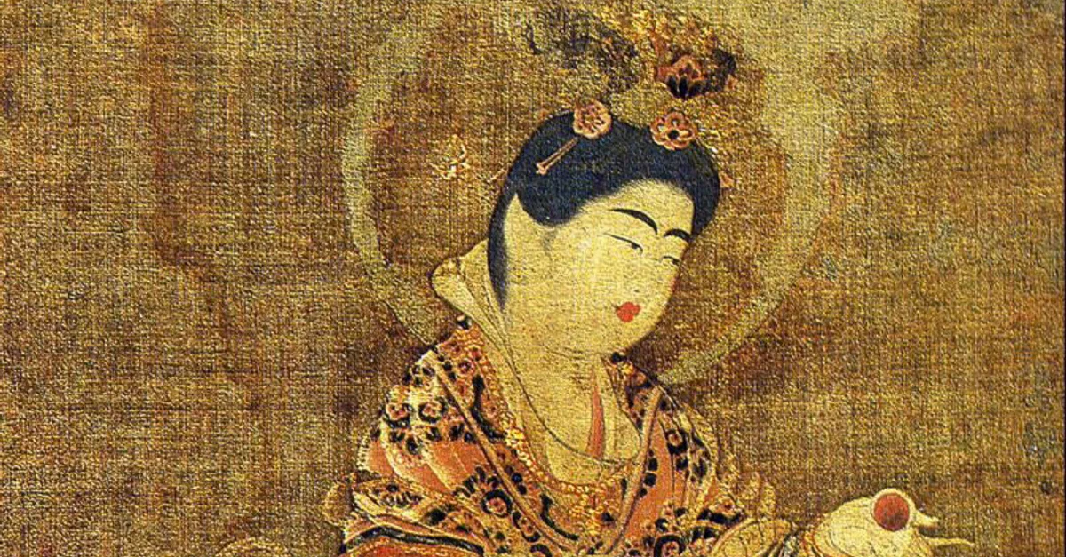 A painting on hemp which shows Kichijoten, a Buddhist deity of fertility and good fortune, but thought to be modelled on Empress Komyo (l. 701-760 CE). Yakushiji temple, Nara, Japan.