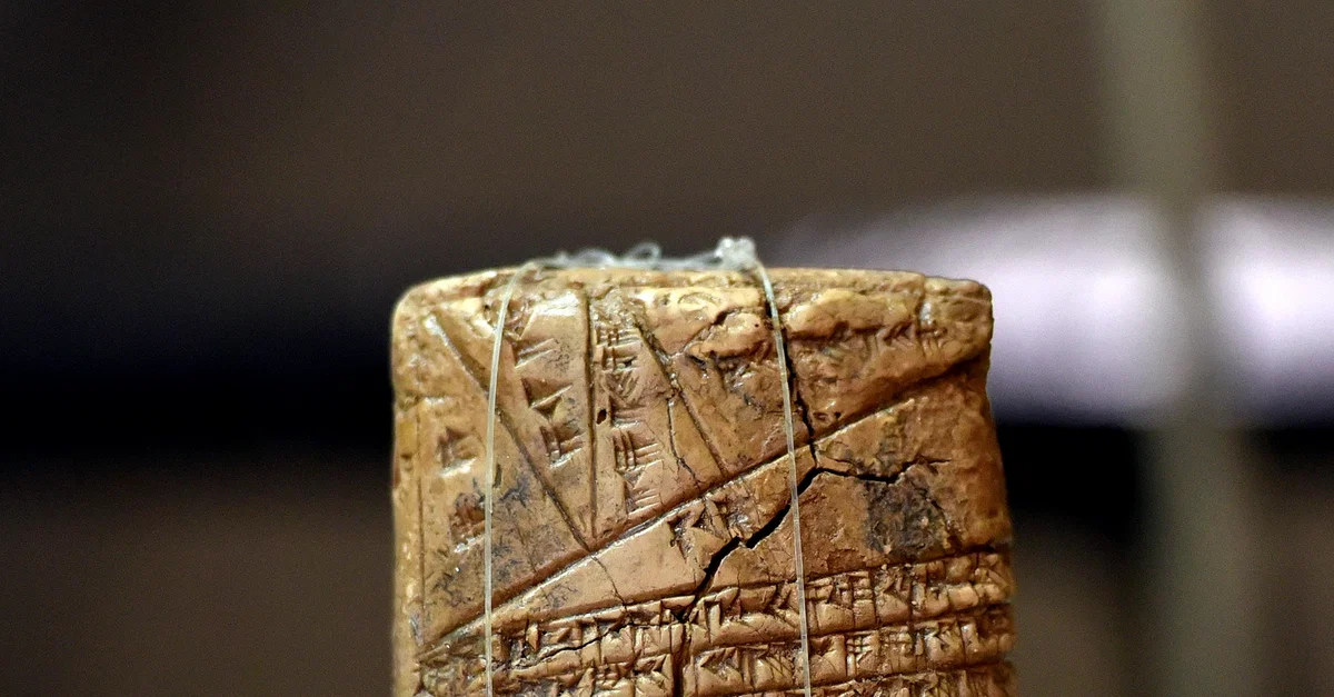 This clay tablet narrates a geometric-algebraic theory of angles and triangles, similar to to the theory of Euclid of Alexandria, the father of geometry (lived c. 300 BCE). From Tell Harmal (ancient Shaduppum), Iraq. Old-Babylonian period, 2004-1595 BCE. On display at the Iraq Museum in Baghdad, Republic of Iraq.