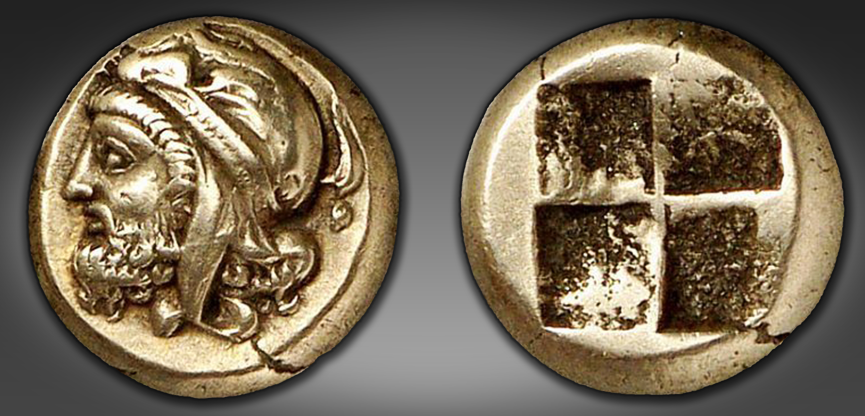 This electrum coin (sixth-stater) portrays Pharnabazus (c. 478-387 BCE), the Persian governor (satrap) of Ionia, wearing a diademed Persian cap; behind his head a seal swims downward. (Nomos no. 1 (6 May 2009) lot 107) Photo courtesy of Victor England, the Classical Numismatic Group.