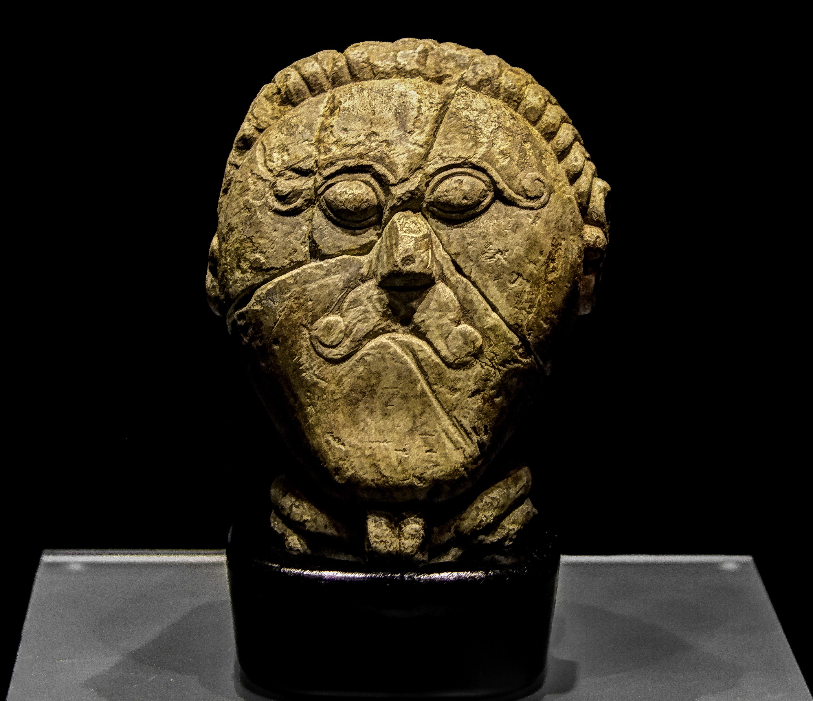The "Mšecké Žehrovice Hero" (also known as the "Mšecké Žehrovice Head") is a late 2nd Century BCE or early 1st Century BCE limestone bust of a Celtic warrior. The male figure wears a Celtic torc necklace, and has stylized facial features which include a curved moustache and brow. This stone head is one of the most reproduced and iconic examples of ancient Celtic art. The bust was originally found in Mšecke Žehrovice, Czech Republic. Celtic culture is thought to have originated in western Central Europe around the 6th or 5th Century BCE, and had spread well into the region of modern-day Poland and the Czech Republic by the time this statue was made. The bust is on display in the National Museum of Prague, in the Czech Republic.