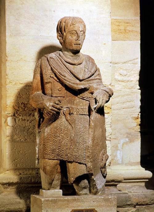 The Warrior of Vachères (or Le Guerrier de Vachères) is a Gallo-Roman statue of a soldier. The soldier wears a Celtic torc necklace, and has a long oval shield, making his identity as a Roman Gaul unmistakeable. He also wears a chainmail shirt and cloak, and has a sword on his hip. It was made in the Augustean period, sometime between the late 1st Century BCE and the early 1st Century CE. The statue was found in Vachères, Alpes de Haute-Provence, France. It is on display in the Calvet Museum in Avignon, France.