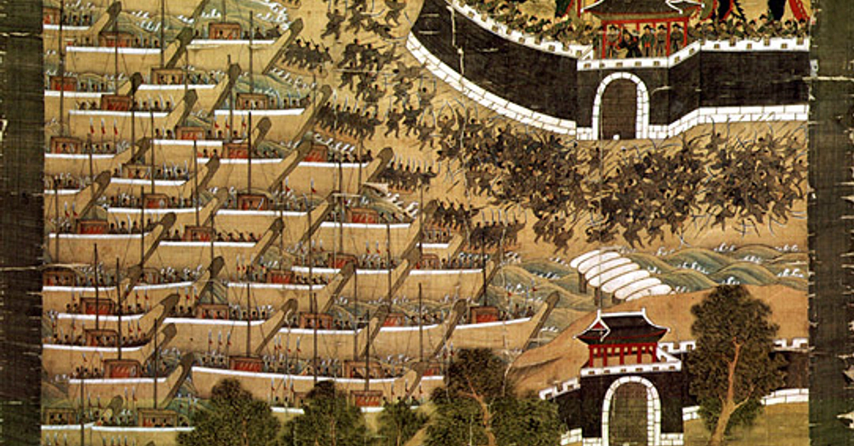 An 18th century CE painted scroll showing the defence of Busanjin Fortress during the Japanese invasions of Korea between 1592 and 1598 CE, otherwise known as the ‘Imjin Wars.’