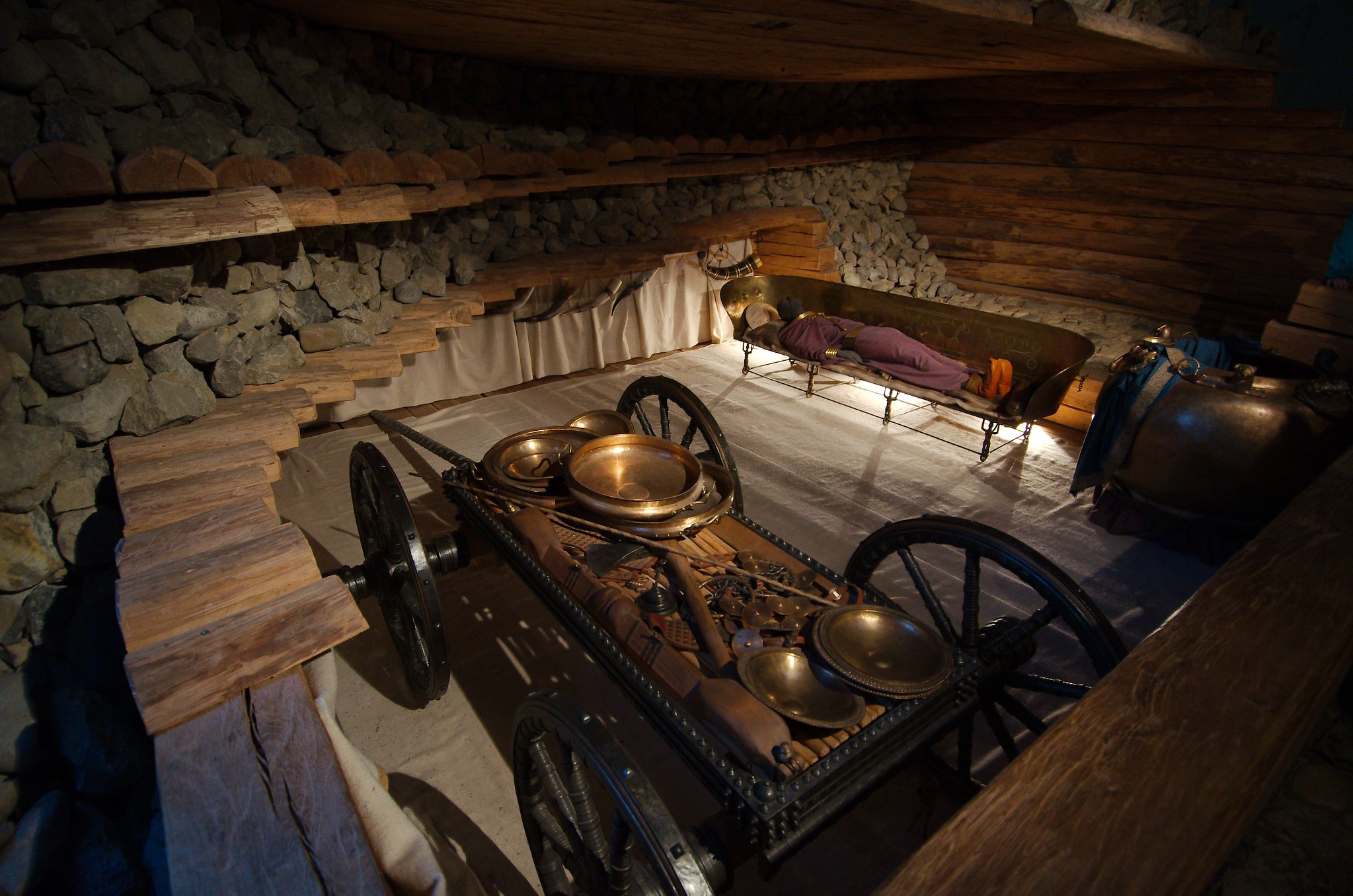 A reconstruction of an Iron Age grave from Hochdorf an der Enz in Baden-Württemberg, Germany. This burial mound is associated with the Hallstatt Culture, and the man interred is believed to have been a Celtic "prince" or chieftain. The grave dates to around 530 BCE, and is located near the remains of a Celtic village which contained several farmsteads.