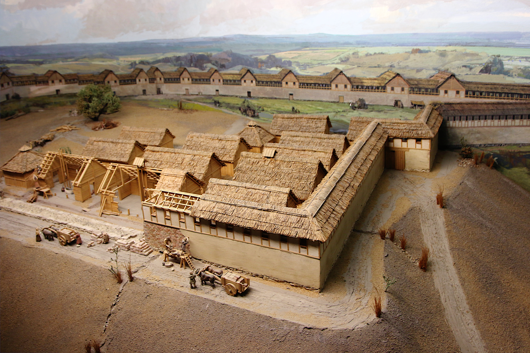 A reconstruction of the late Iron Age hillfort in Heuneburg, Germany. Heuneburg was first fortified in the 16th Century BCE, but was abandoned in the Late Bronze Age. Heuneburg was again fortified in the 6th Century BCE with a mud brick wall. Around 500 BCE, the site's fortifications were structured like a Celtic oppidum, with a stone wall encircling a wooden wall. Watchtowers were built around the whitewashed mudbrick walls, and rectangular timber dwellings were built inside. The interior layout of the settlement was inspired by Classical Greek cities, a testament to Mediterranean architectural influences which had begun permeating Europe.