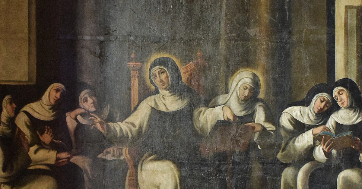 Saint Paula Teaching her Nuns, mid-17th century CE, by André Reinoso. Currently in the Monastery of the Hieronymites (Mosteiro dos Jerónimos), in Lisbon, Portugal.