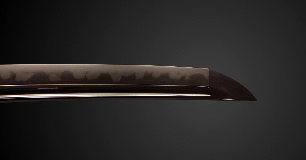 The blade of a samurai sword, the katana, displaying the distinctive wavy hamon or temper pattern used by Japanese swordsmiths to identify their work. 1501 CE. (Guimet Museum, Paris)