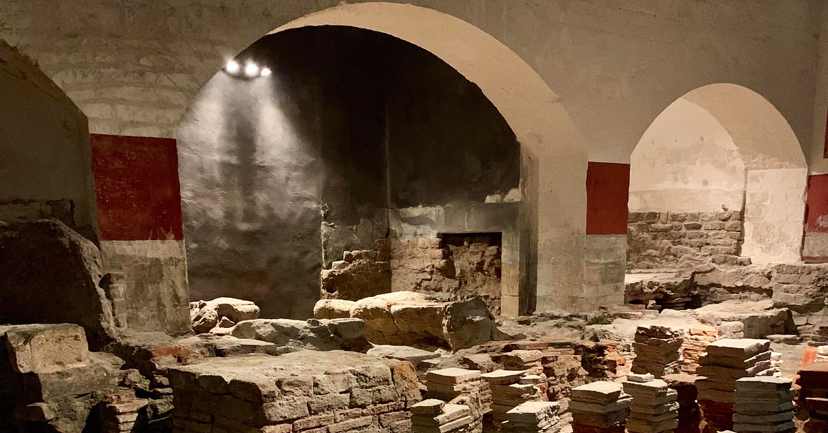 Remains of the Caldarium (hottest room) in the bath complex in Aquae Sulis (Bath). The roman bath complex was in use from the middle of the 1st to the early 5th century CE. Now visible in the Roman Baths Museum in Bath, UK.