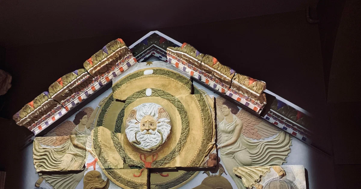 The pediment from the temple of Sulis Minerva is a carving of a Gorgon’s head- thought to be a “male Medusa” surrounded by hair, wings and possibly snakes. Gorgon’s heads are linked to Minerva and her Greek equivalent, Athena, as she carries the gorgon symbol on her shield and/or armor. The Sulis Minerva temple was in use in the Roman period in Britain (1st to early 5th century CE) and can now be viewed in the Roman Baths Museum in Bath, UK.
