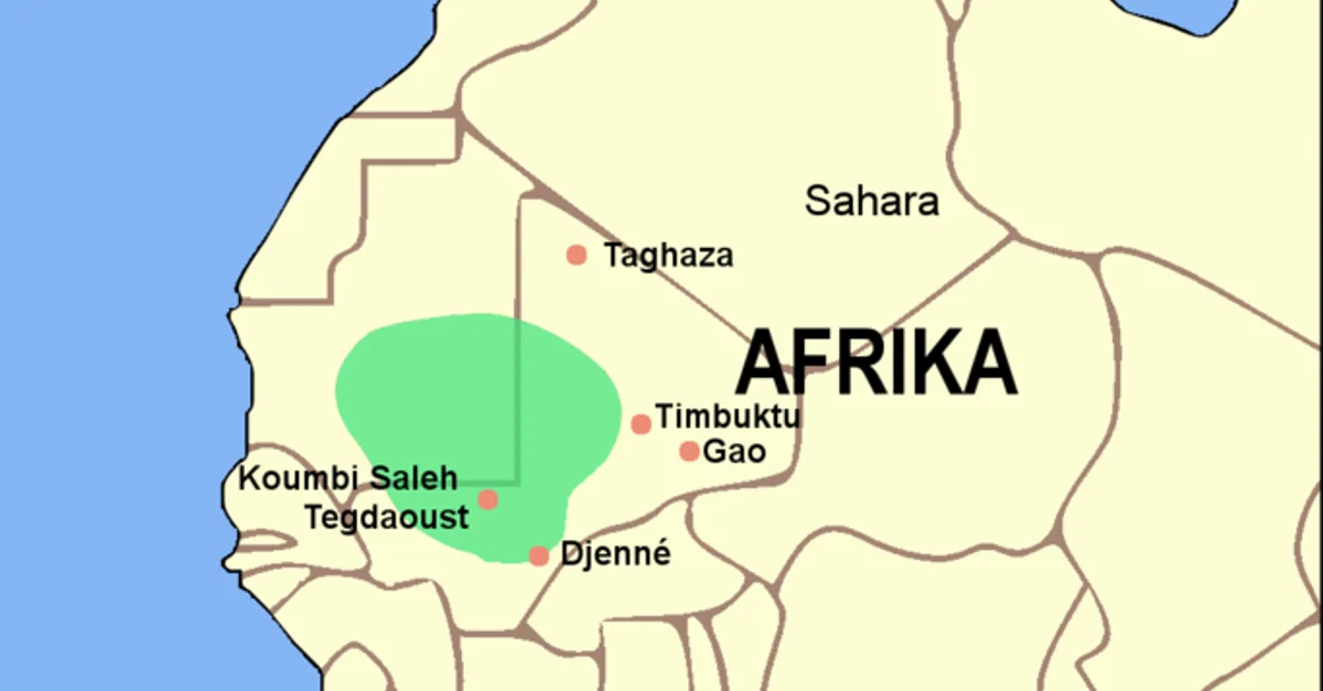 The Ghana Empire (6th-13th century CE) at its greatest extent is indicated in green.