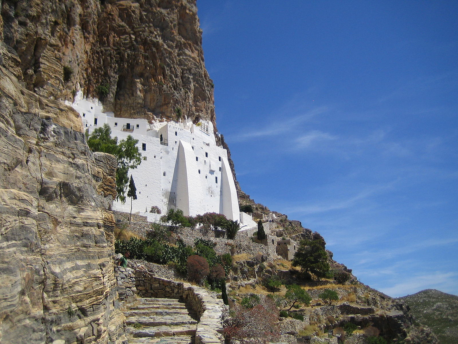 wikivoyage, Roland Godefroy / User: (WT-shared) Teddy at wts. "Hosoviotissa Monastery, Amorgos Greece." World History Encyclopedia, 10 Aug 2019, https://www.worldhistory.org/image/11051/hosoviotissa-monastery-amorgos-greece/.