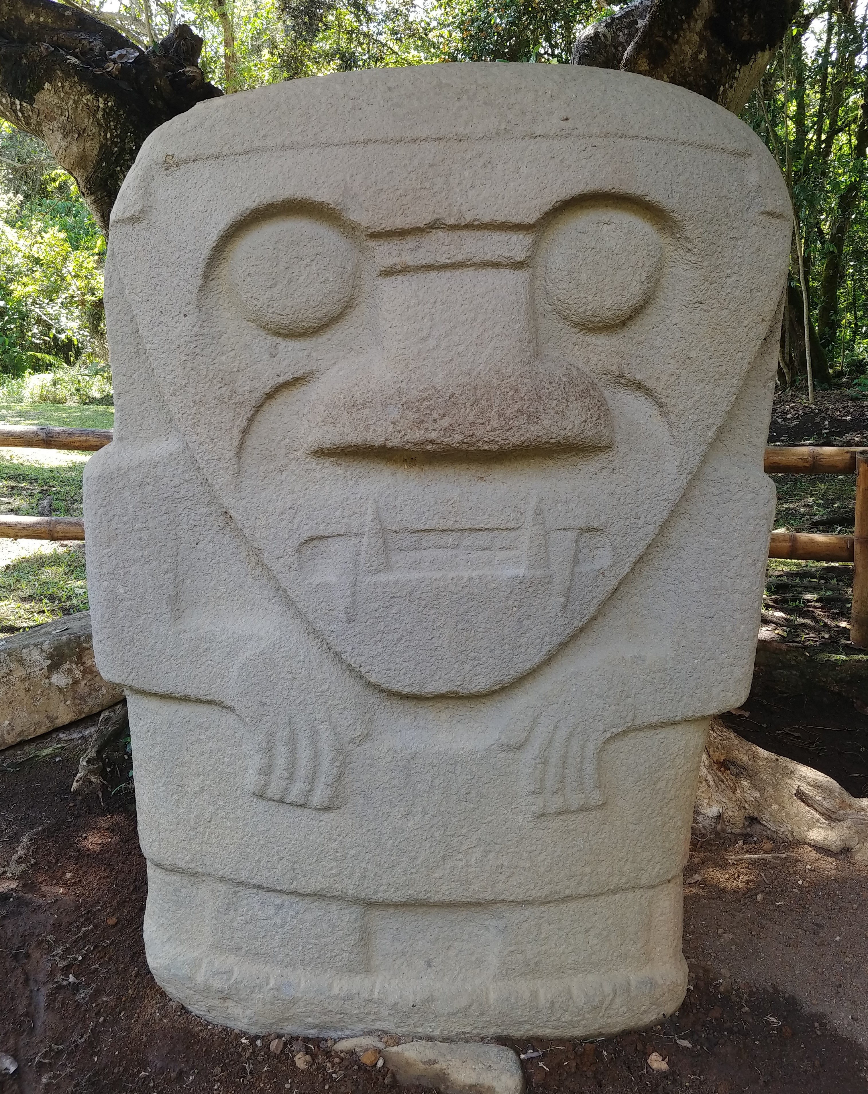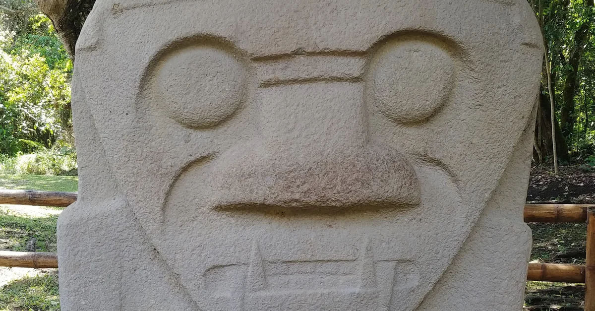 Megalithic funerary statue at Mesita C near San Agustín, Huila Department, Colombia. Created c. 1st to 10th century CE.