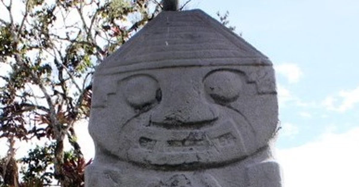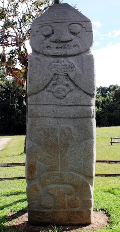 Megalithic funerary statue referred to as El Partero at Mesita B near San Agustín, Huila Department, Colombia. Created c. 1st to 10th century CE.