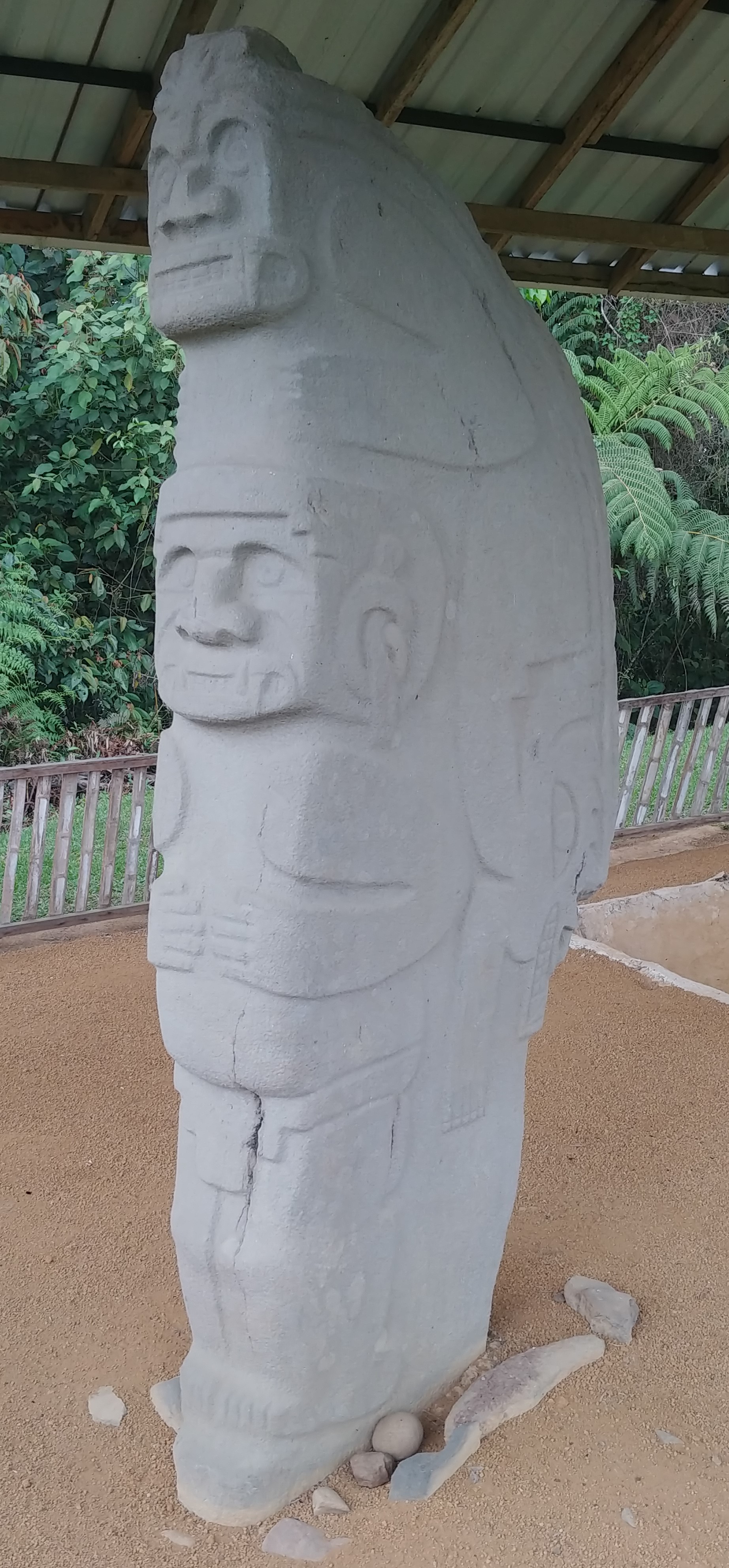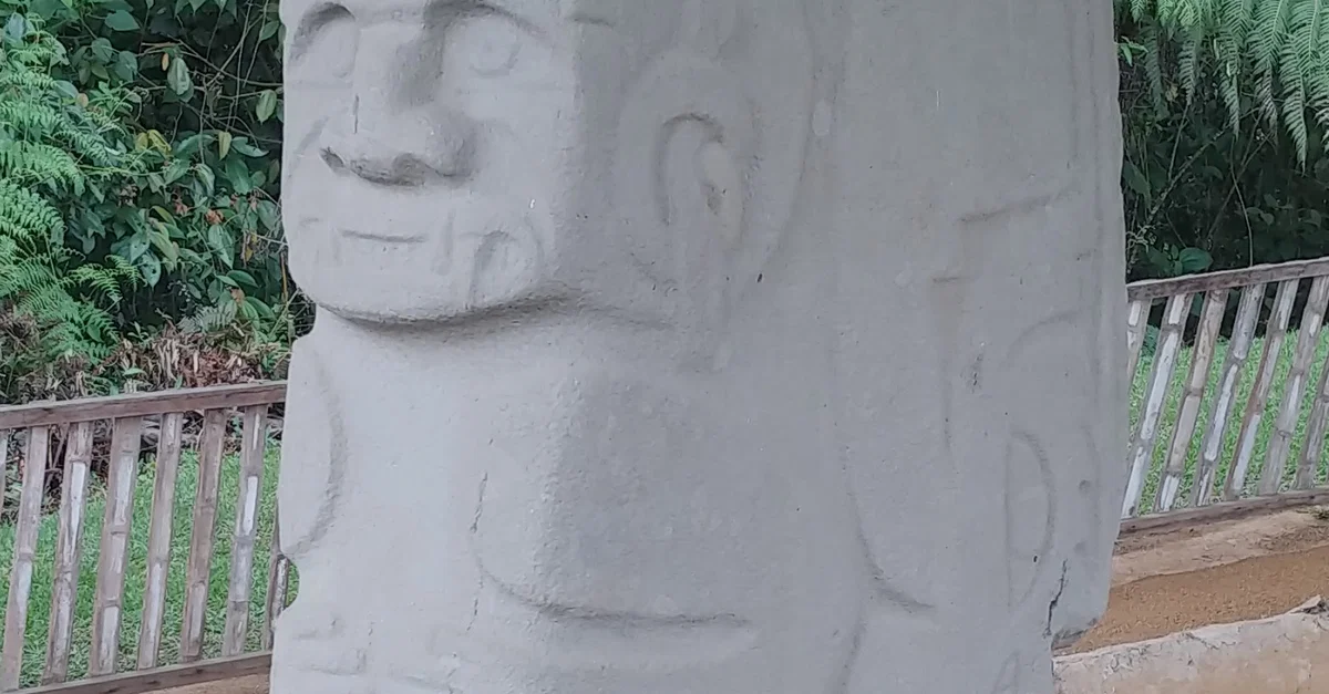 Megalithic funerary statue referred to as El Doble Yo at Alto de Las Piedras near San Agustín, Huila Department, Colombia. Created c. 1st to 10th century CE.