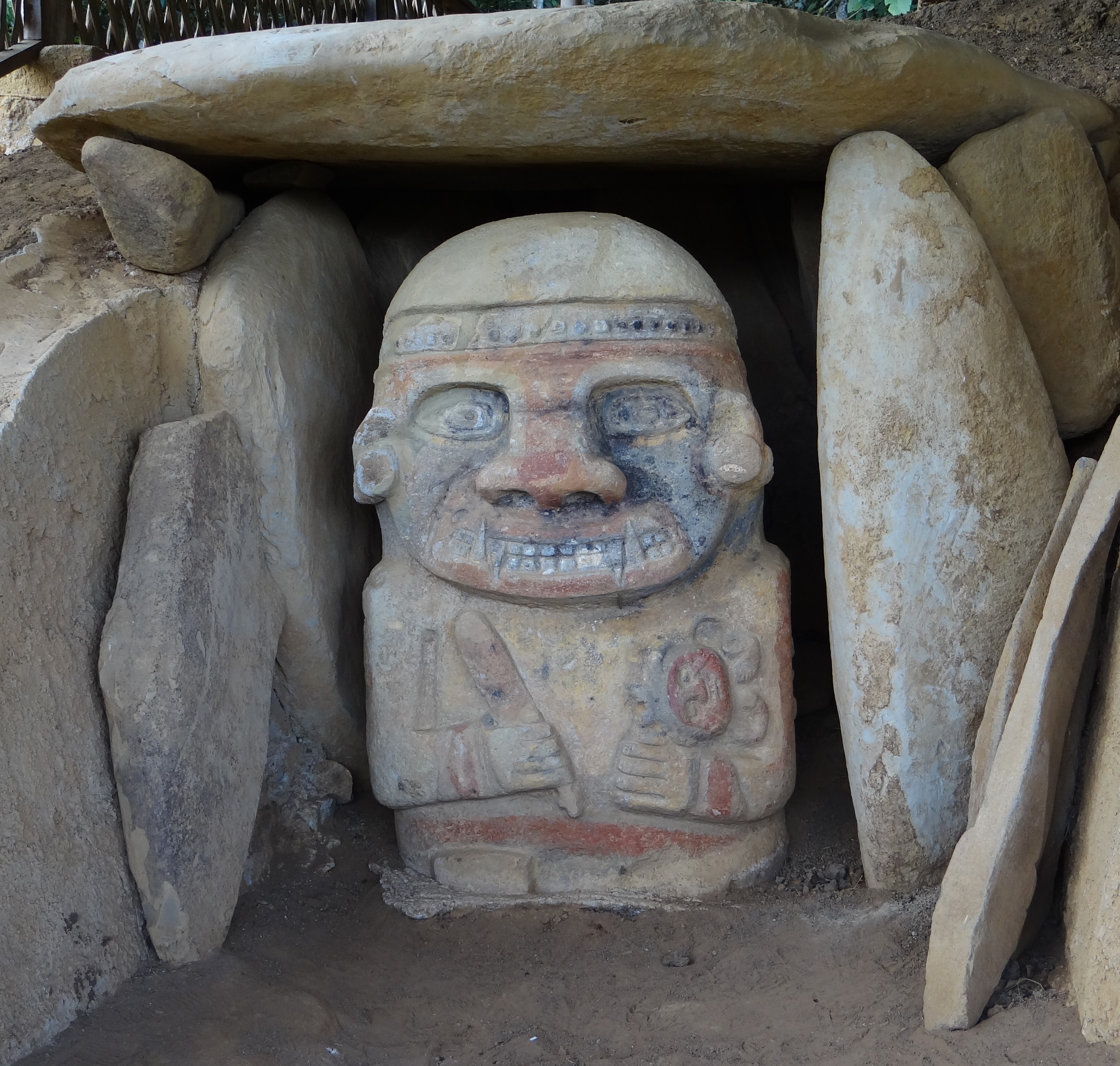 Megalithic funerary statue at site referred to as El Purutal near San Agustín, Huila Department, Colombia. Created c. 1st to 10th century CE.