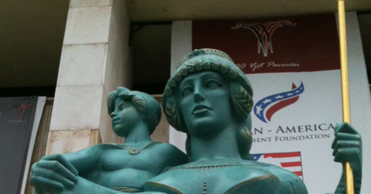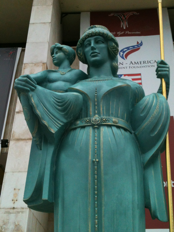 Statue of the Illyrian Queen Teuta (r. 231-227 BCE) and Pinnes in Tirana, Albania