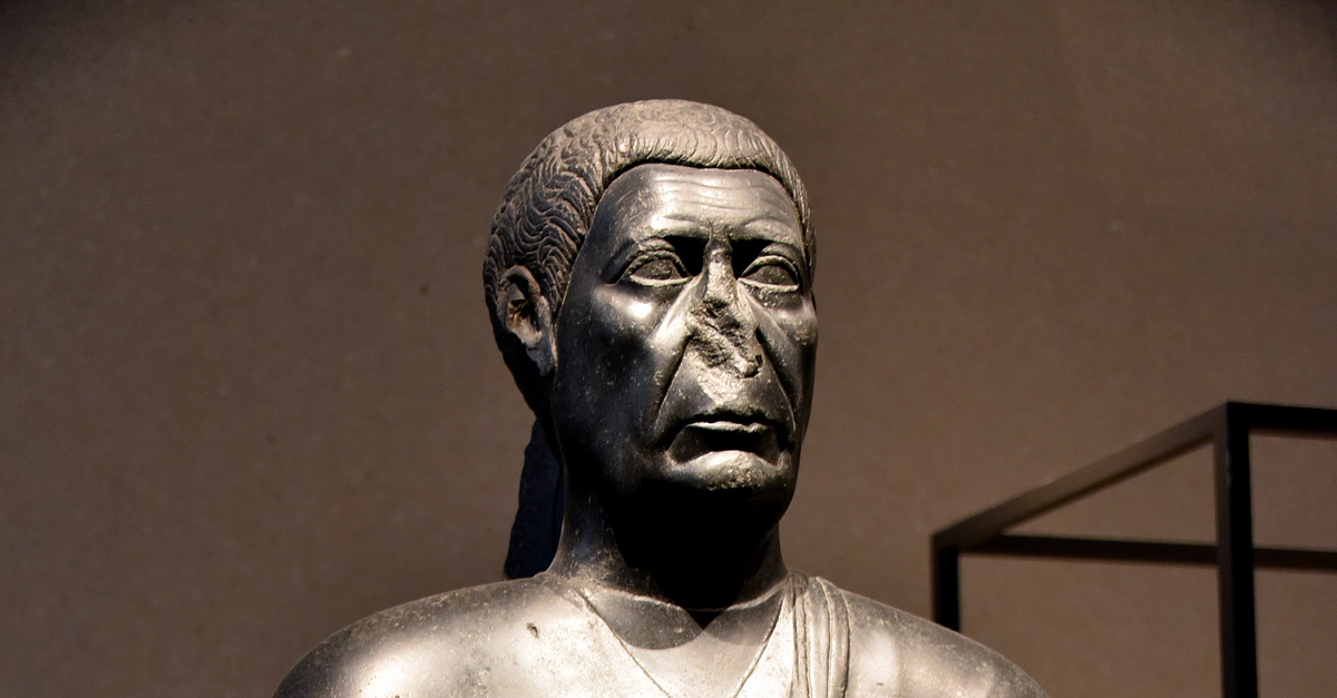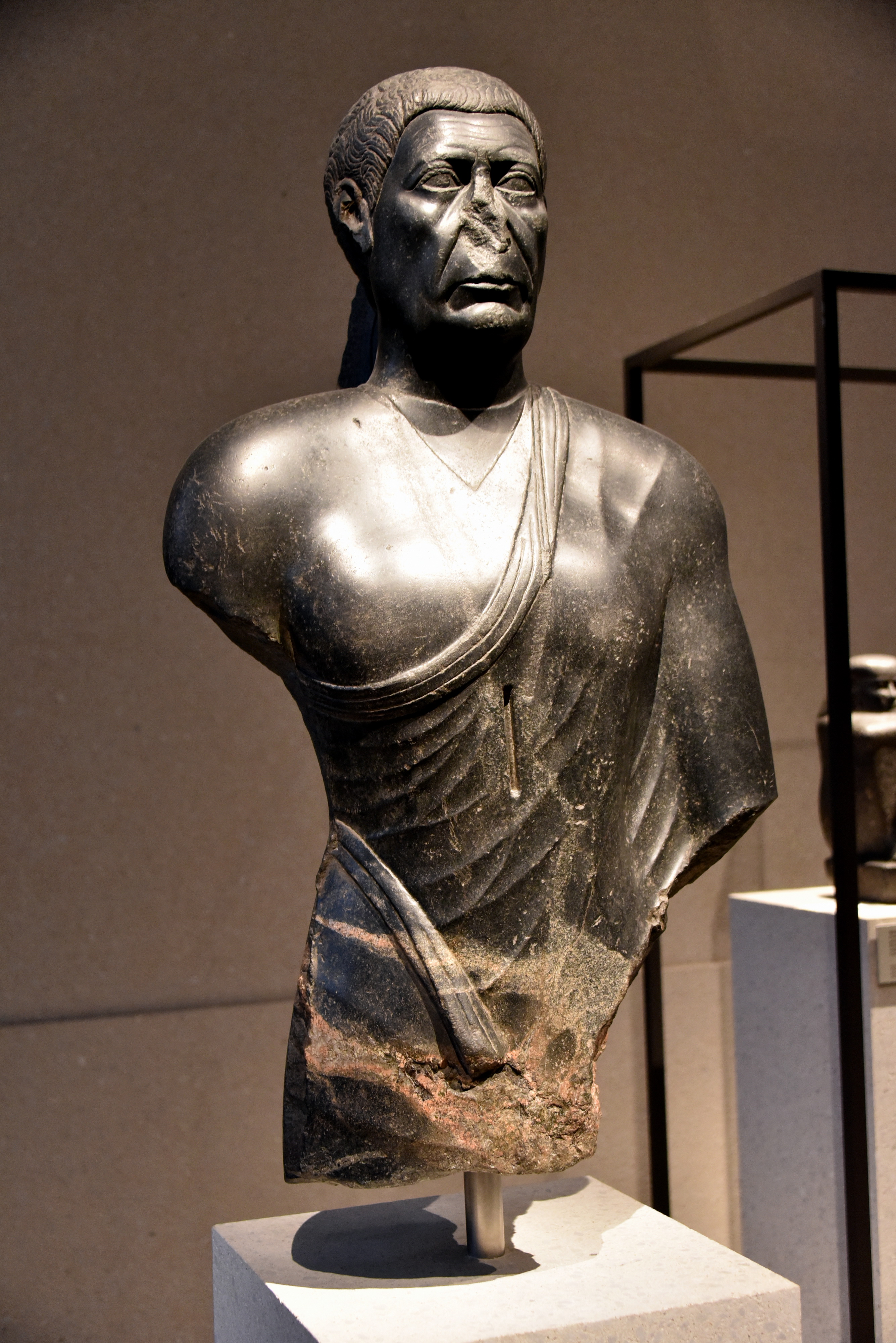 The upper part of the statue of Hor-sa-Tutu has survived. He was the commander-in-chief of the troops in Lower Egypt. From Sais (Sa El Hagar), Egypt. Ptolemaic Period, 150-50 BCE. (The Neues Museum, Berlin, Germany).