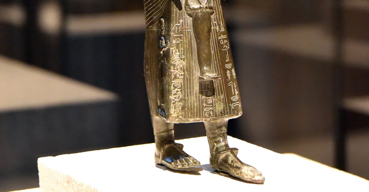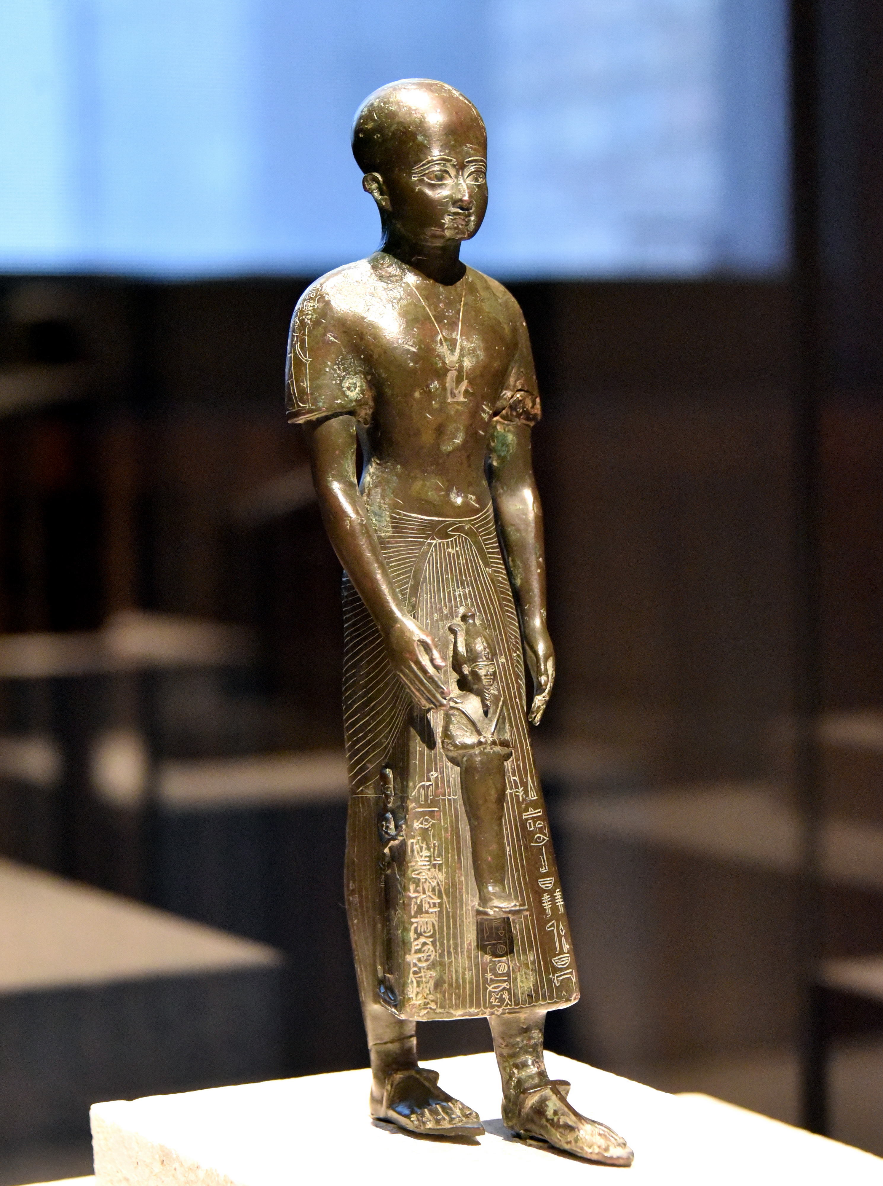 Praying statue of Khonsumeb, God's father of Khonsu. Bronze, once decorated with precious stones. Third Intermediate Period, 22nd to 24th Dynasties, 945-714 BCE. (The Neues Museum, Berlin, Germany).