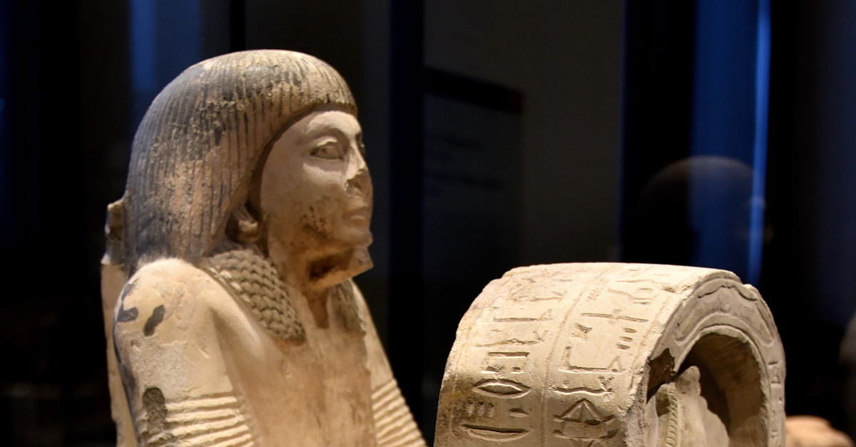 Kneeling figure of Setau, Viceroy of Kush, holding a stela (stelophor).Limestone. New Kingdom, 19th Dynasty, reign of Ramesses II, 1279-1213 BCE. Probably from Abydos, Egypt. (The Neues Museum, Berlin, Germany).