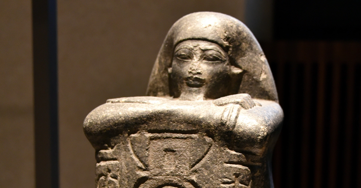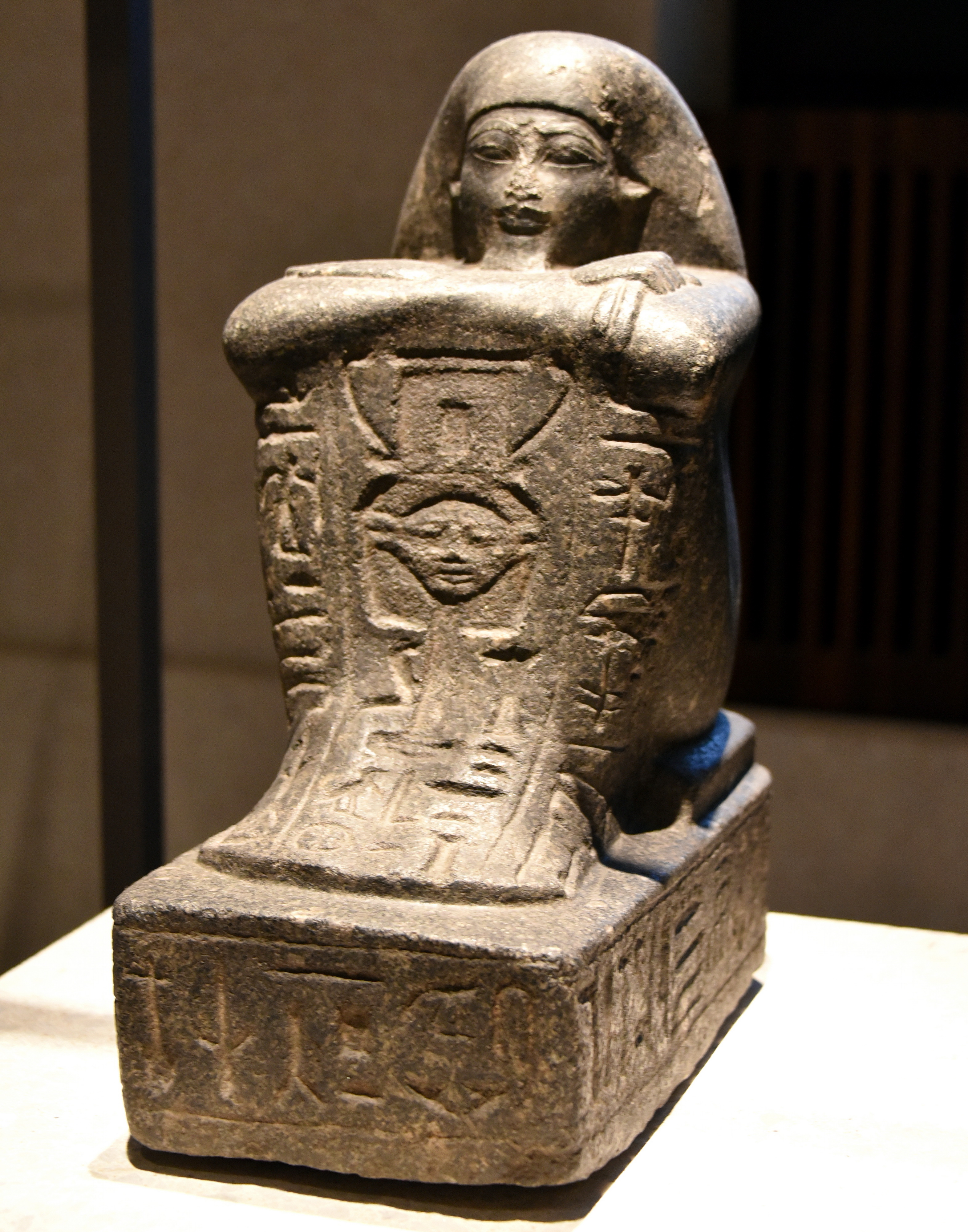 Block statue of Sen-nefer. He was the chief steward of the pharaoh as well as a priest of several ancient Egyptian deities. Granodiorite. New Kingdom, 18th Dynasty, reign of Amenhotep III, 1388-1351 BCE. Probably from Bubastis (Tell-Basta), Egypt. (The Neues Museum, Berlin, Germany).