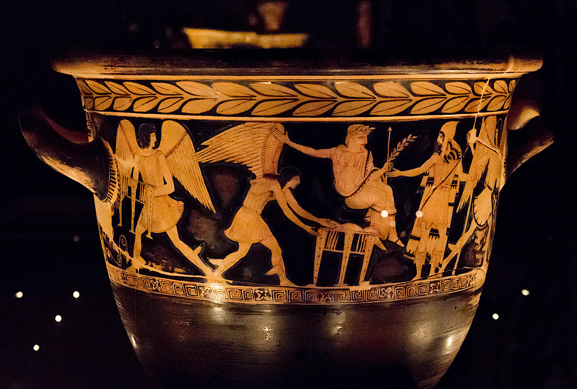 A red-figure krater showing a scene where harpies attack King Phineus. Attica, c. 450 BCE.