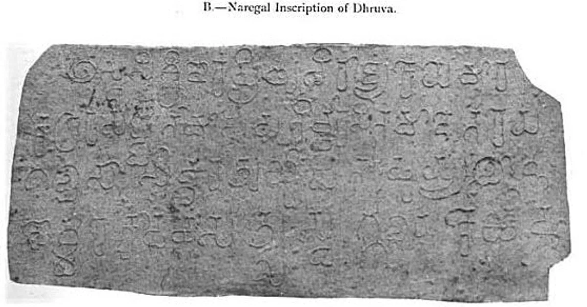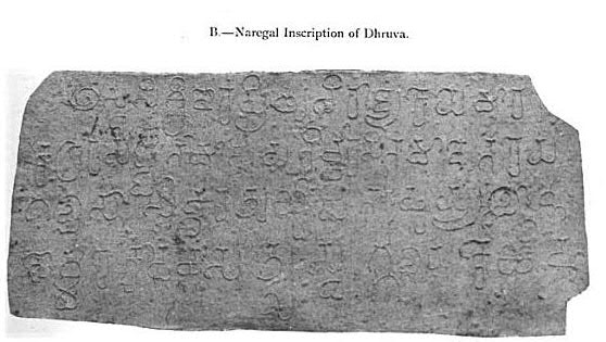 Old Kannada inscription (780 CE) of Rashtrakuta King Dhruva Dharavarsha, Naregal, India. Ref source: Epigraphia Indica and Record of the Archæological Survey of India, Volume 6, (1900), pp.162-163